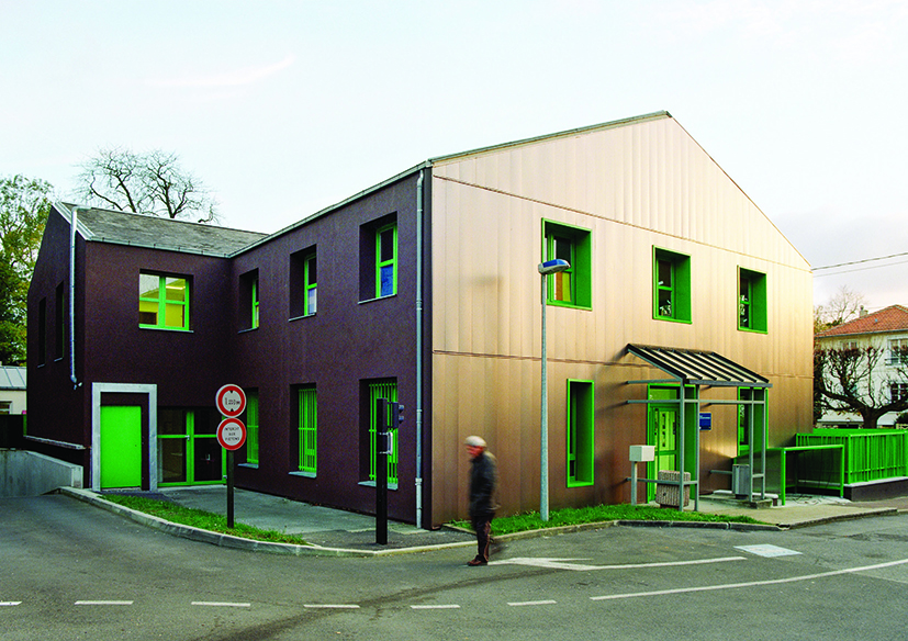 Le bâtiment se déploie sur deux niveaux. La crèche vient s’implanter dans une partie du RDC et au R+1 du bâtiment. L’autre partie du RDC est occupée par un Relais d’Assistantes Maternelles, géré par la commune. Le confort du bâtiment est amélioré par la mise en oeuvre d’une isolation thermique par l’extérieur, habillée d’inox coloré.