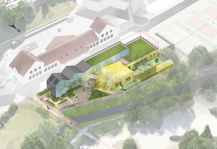 Au cœur de la ville de Buc, un nouveau multi-accueil verra le jour pour accueillir 51 enfants. Son implantation en centre-ville, bordée par la Bièvre, apparaît comme une évidence puisque le secteur accueille en effet d’ores et déjà deux groupes scolaires et un gymnase.