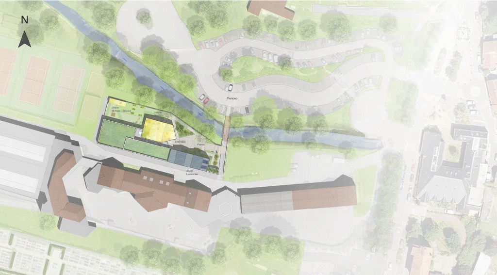 Rythmée par la rivière, un cadre naturel verdoyant, et un environnement pavillonnaire calme, la parcelle semble propice à l’implantation d’un tel équipement, en offrant un cadre de vie agréable pour l’épanouissement des enfants.