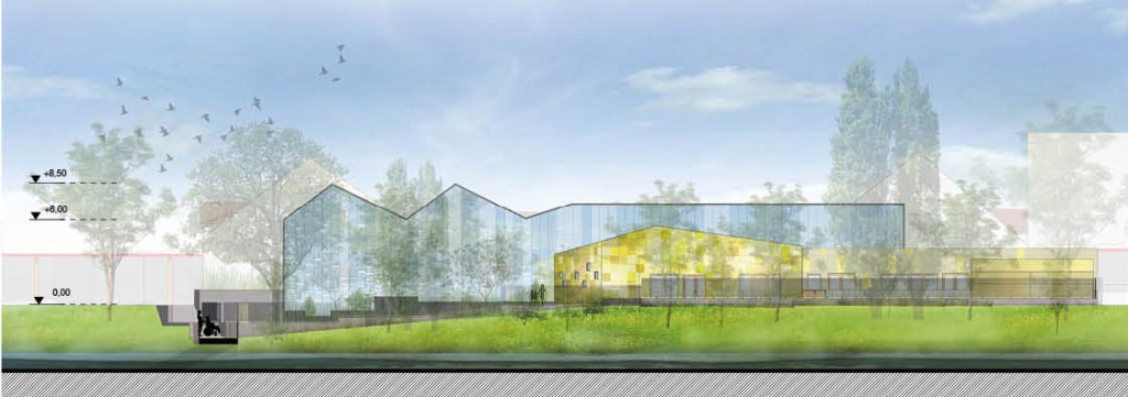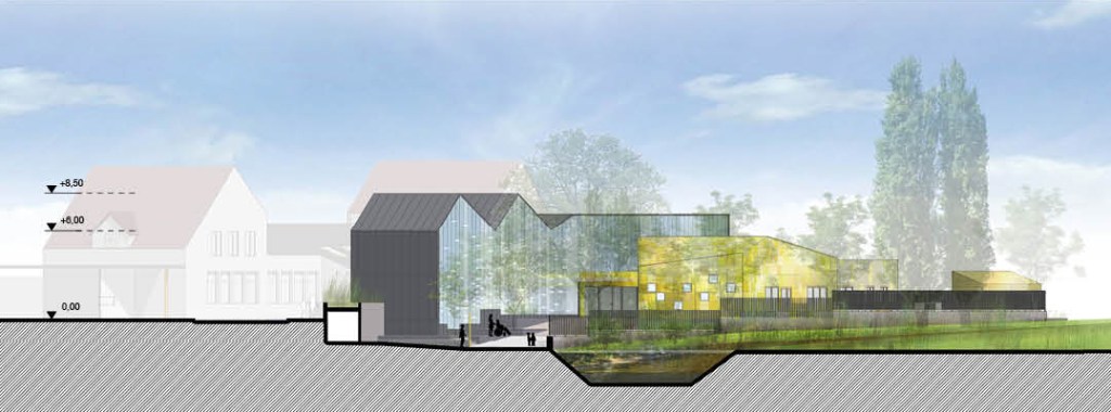 L’écriture architecturale proposée vise à profiter des atouts que nous offre ce site d’exception. Un point d’honneur a été porté quant à la qualité des espaces et l’épanouissement des enfants. Les spécificités contextuelles du tissu urbain ont été analysées et prises en compte dans l’organisation des espaces. C’est ainsi que le choix s’est porté sur un bâtiment reprenant la typologie urbaine environnante.