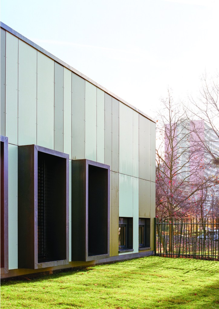 Le bâtiment est en construction modulaire, ce qui implique une répétition de trames et mène à une rationnalisation des espaces.